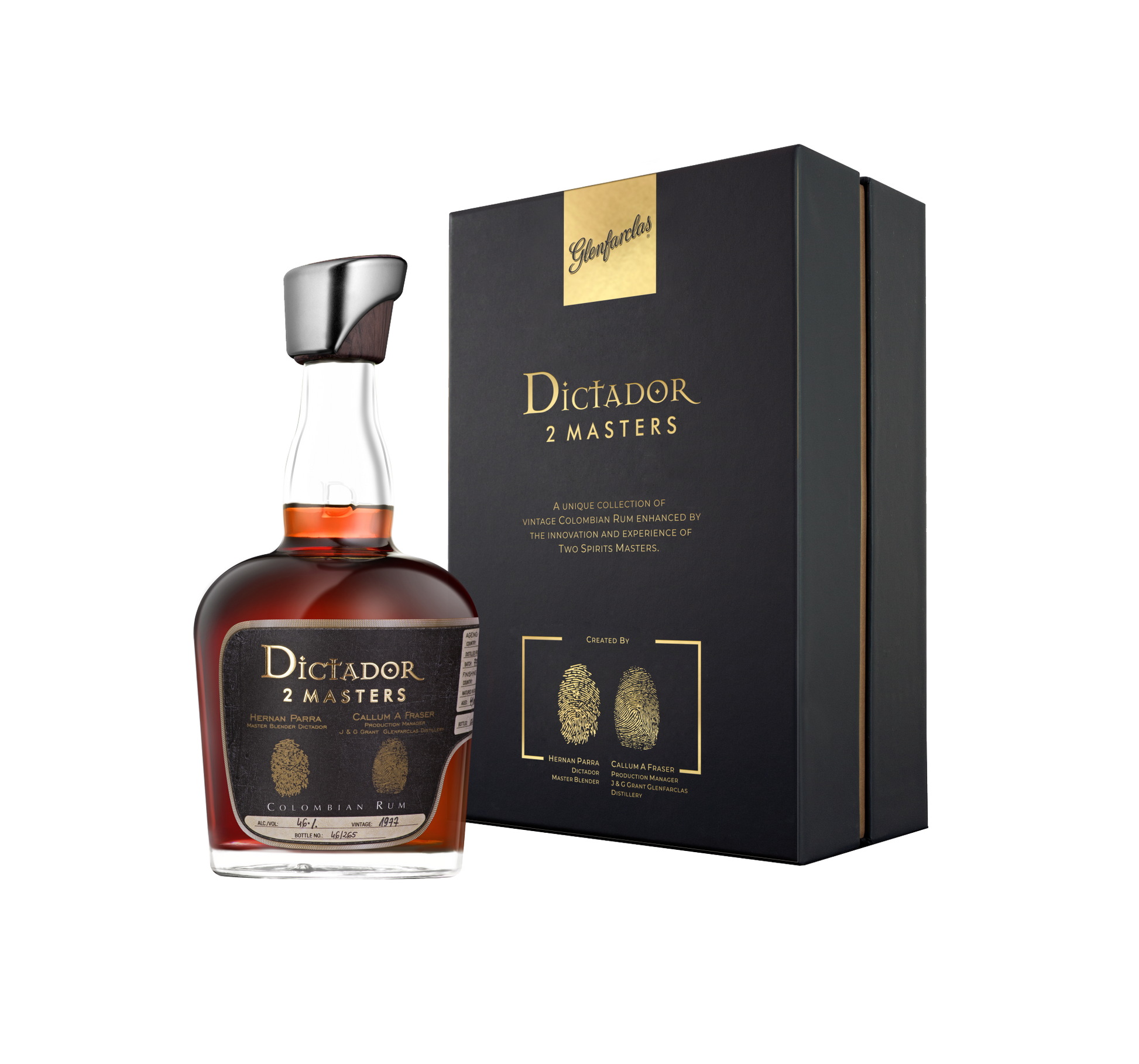 Dictador 2 Masters is a pioneering collaboration series where Dictador entrusts its finest aged rum to world-renowned spirit houses. Each partner continues maturation in their own domain — in different cellars, on different continents, under the expertise of another master — reshaping the rum through their distinctive craft, climate and cask influence. Rum Dictador 2 Masters Glenfarclas 1977 — Tasting Notes Nose: Freshly ground coffee and earthy patchouli open the experience. Ripe plums, blackcurrant leaf and peach melba add mellow fruit layers. Toasted vanilla and almond warmth deepen the aroma. Palate: Rounded, smooth and creamy — impeccably brewed coffee layered with rich treacle toffee. Cracked black pepper, BBQ char and subtle savoury nuances give structure and depth. Finish: A harmonious interplay of cinnamon and nutmeg with the sweetness of black tea. Blackcurrant notes return, leaving a long, flavourful and refined conclusion.