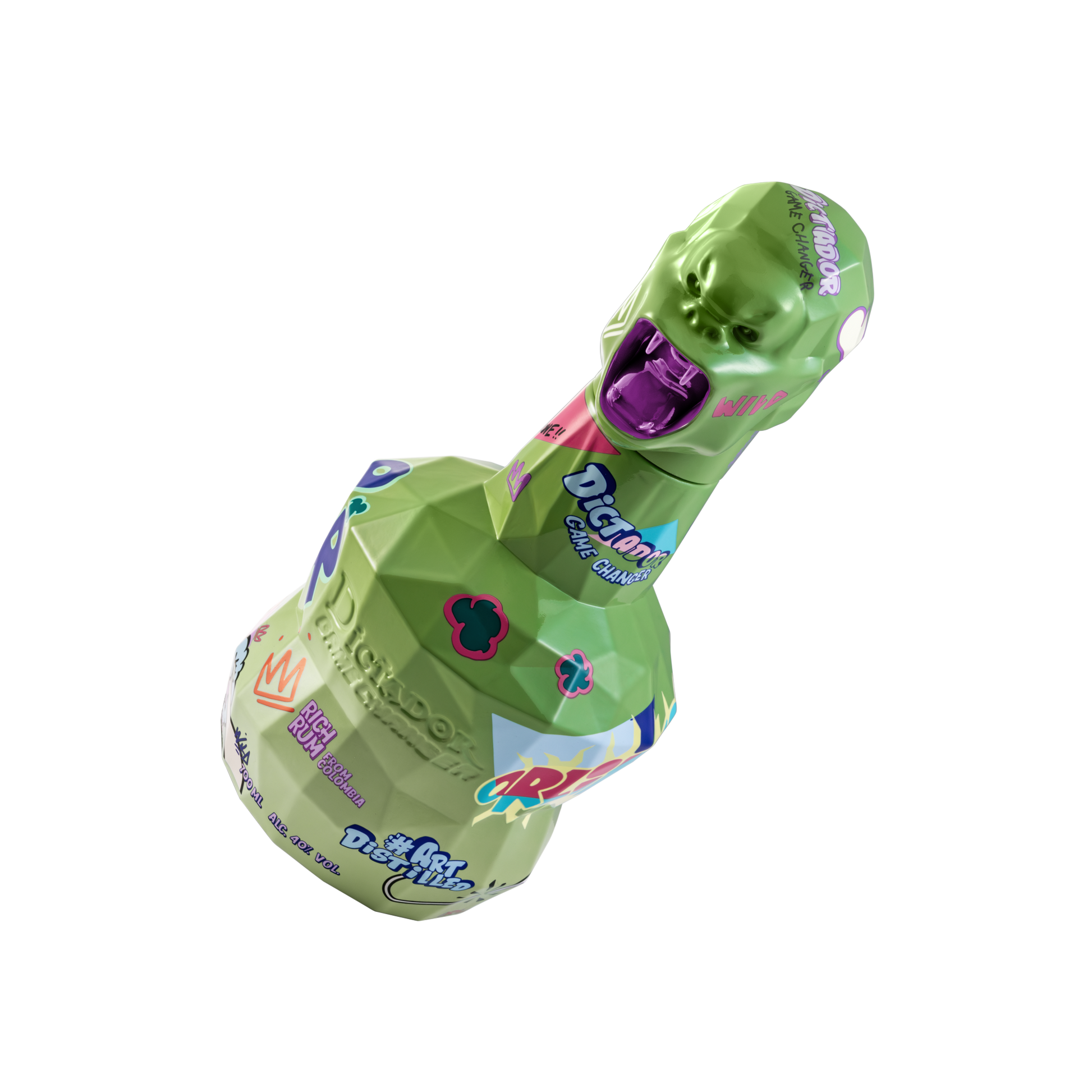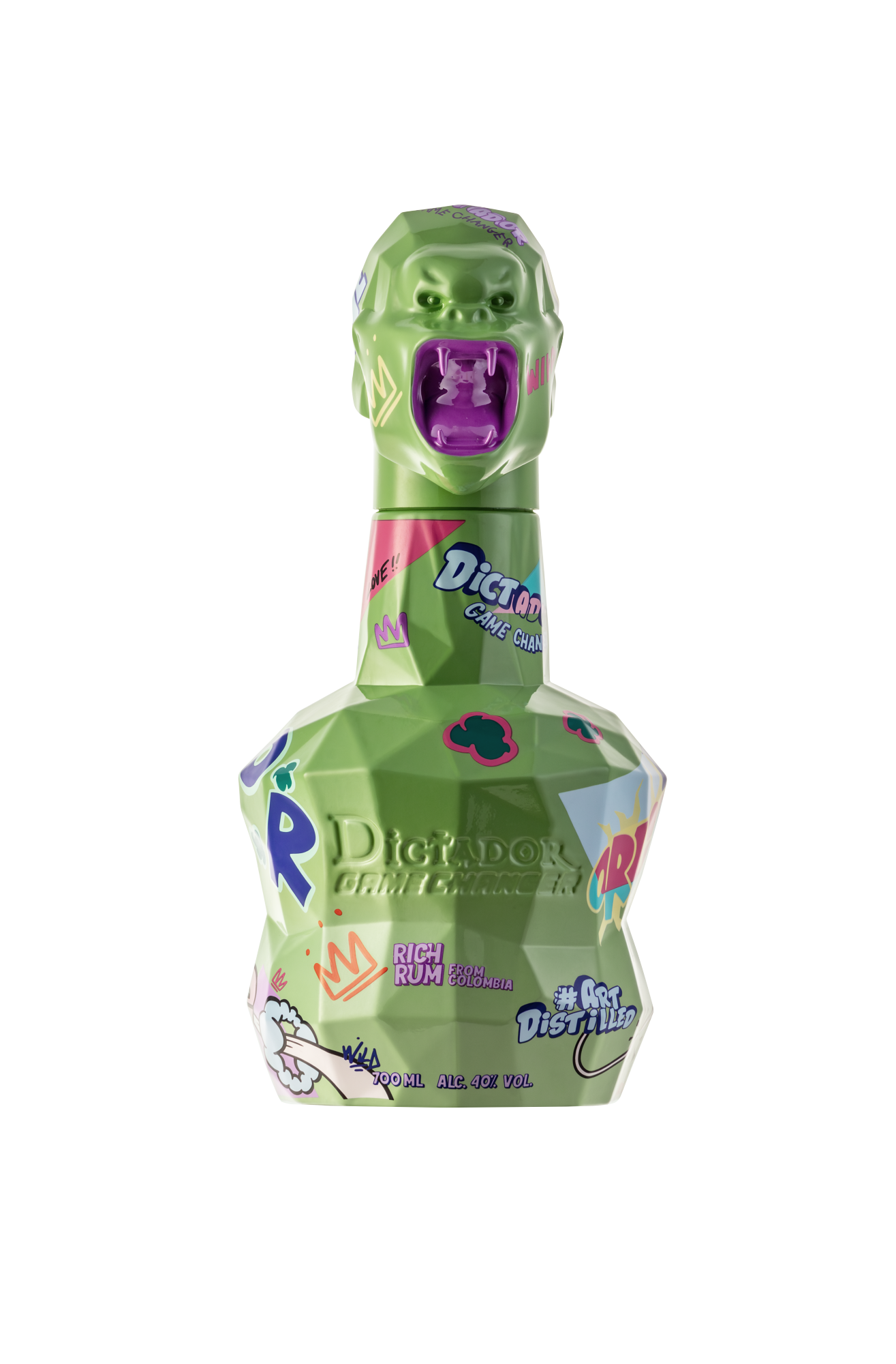 Dictador Game Changer is a groundbreaking fusion of contemporary art and luxury rum. Designed by visionary artist Richard Orlinski, it represents individuality, rebellion, street-art attitude, and modern creativity. Crafted from virgin sugar cane honey, distilled in pot and column stills and aged by the Caribbean Sea, it is a bold statement piece — a collectible sculpture filled with exceptionally rich Colombian rum. The blend contains barrels filled between 1999 and 2019, delivering depth, layered flavour, and a new era of taste expression. Rum Dictador Game Changer — Light Green — Tasting Notes Nose: Intense and complex. Sweet notes of maple syrup come to the forefront, soon supported by hints of Kopiko candies and caramel. The balance is provided by aromas of orange peel and orange with cloves. Palate: Balanced and fresh. The aromas are consistent with the nose, with slightly stronger notes of caramel, roasted nuts, honey, and a good counterbalance of dried citrus. Finish: Long and pleasant, thanks to the strong aromatics and sweet notes highlighted in the aroma and flavour description.
