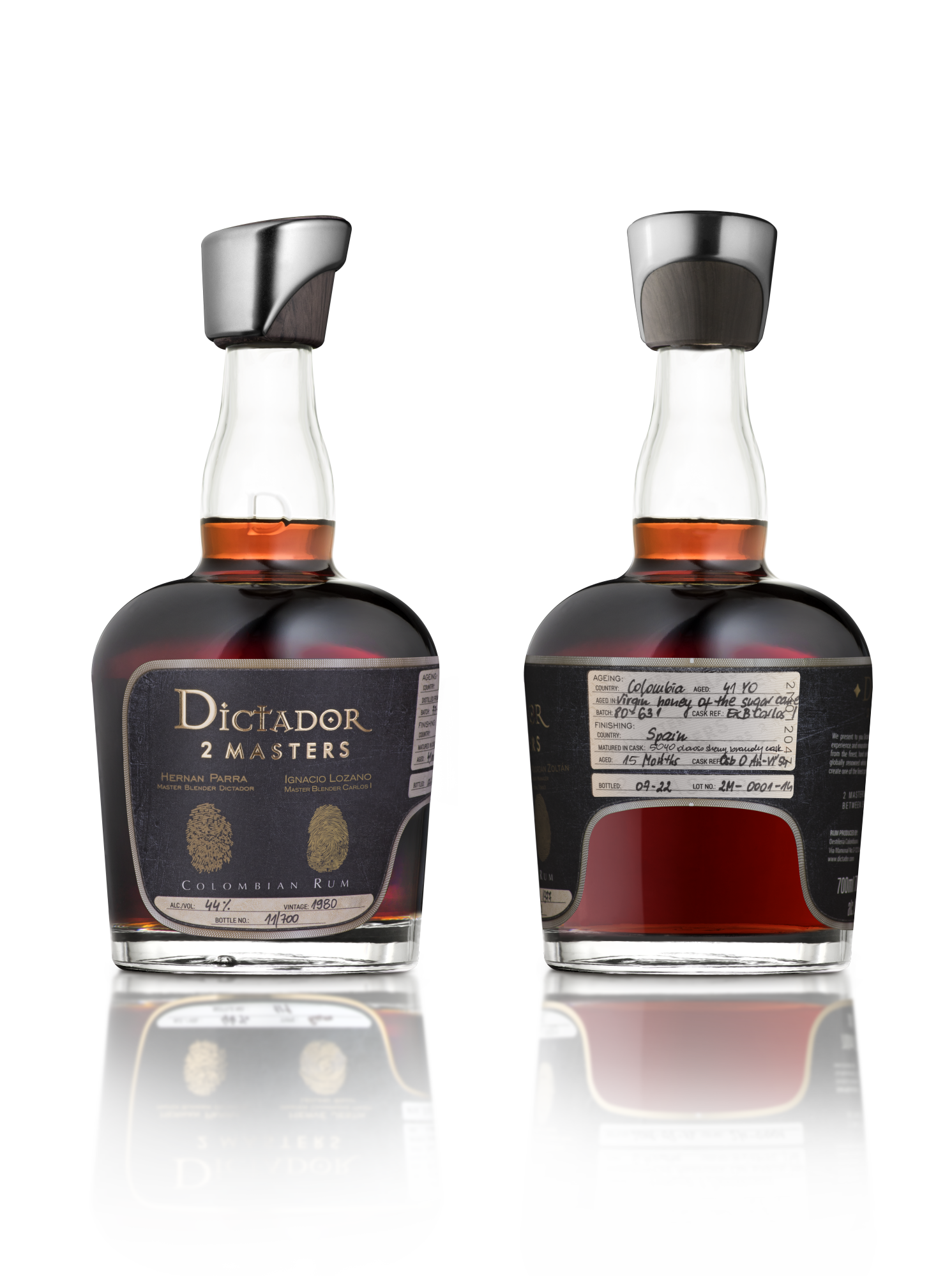 Dictador 2 Masters is a unique collaboration platform where Dictador sends its finest aged Colombian rum to world-leading spirit producers. These masters continue maturation in their own cellars, shaping the rum through their expertise, environment and casks — creating rare cross-category masterpieces protected by advanced authentication features. Rum Dictador 2 Masters Carlos I 1980 — Tasting Notes Nose: Rich dark chocolate, black cherries and oolong tea. Freshly cut oak mixes with antique books and vintage, well-varnished furniture — luxurious and opulent. Figs drizzled in honey complete the aromatic profile. Palate: Juicy red apples lead, followed by fresh ginger, ripe red cherries and subtle milk chocolate. Tropical fruit notes appear — pineapple in syrup and honeyed apricots with almond flakes. Spun sugar and a touch of ginger add lift and warmth. Finish: Long, lingering and warming — layers of ginger, cedar wood and candied orange peel dipped in dark chocolate.